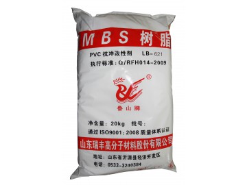 MBS 树脂系甲基丙烯酸甲酯(M)、丁二烯(B)、苯乙烯(S)三元共聚物,主要用于聚氯乙烯加工成形中,在无损聚氯乙烯树脂固有特性的前提下,改善其冲击强度。